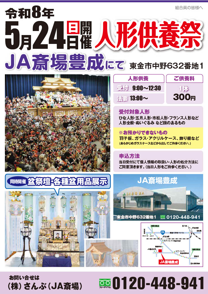 令和8年 人形供養祭・盆展示会 JA斎場豊成にて開催